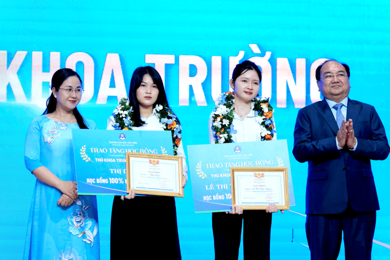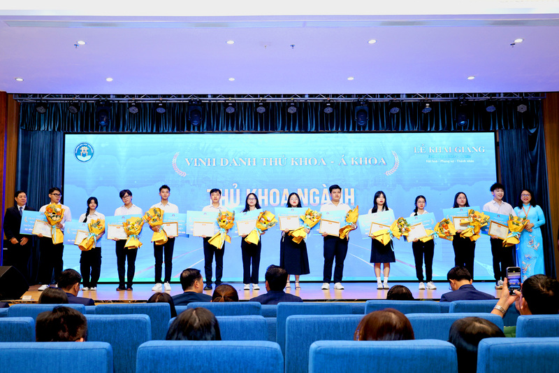 Đại diện các doanh nghiệp đã trao học bổng tài trợ với tổng giá trị hơn 30 tỷ đồng cho sinh viên có hoàn cảnh khó khăn và có thành tích học tập tốt, động viên các em trong hành trình học tập và phát triển. Đồng thời Nhà trường cũng tiến hành vinh danh và trao học bổng cho 41 tân sinh viên là Thủ khoa, Á khoa Trường và Thủ khoa các ngành – với mong muốn đồng hành cùng các em trên hành trình chinh phục ước mơ, vươn tầm tri thức mới.