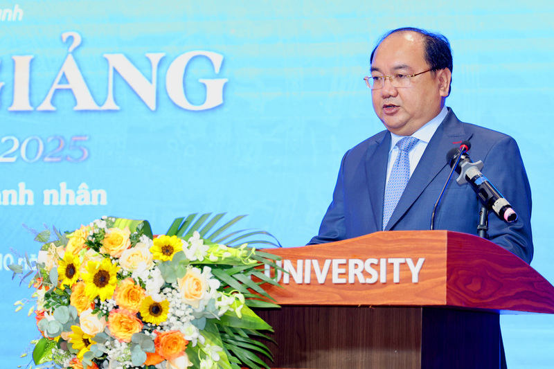 PGS. TS. Nguyễn Minh Đức, Hiệu trưởng Trường Đại học Văn Hiến phát biểu tại Lễ khai giảng năm học 2024 - 2025